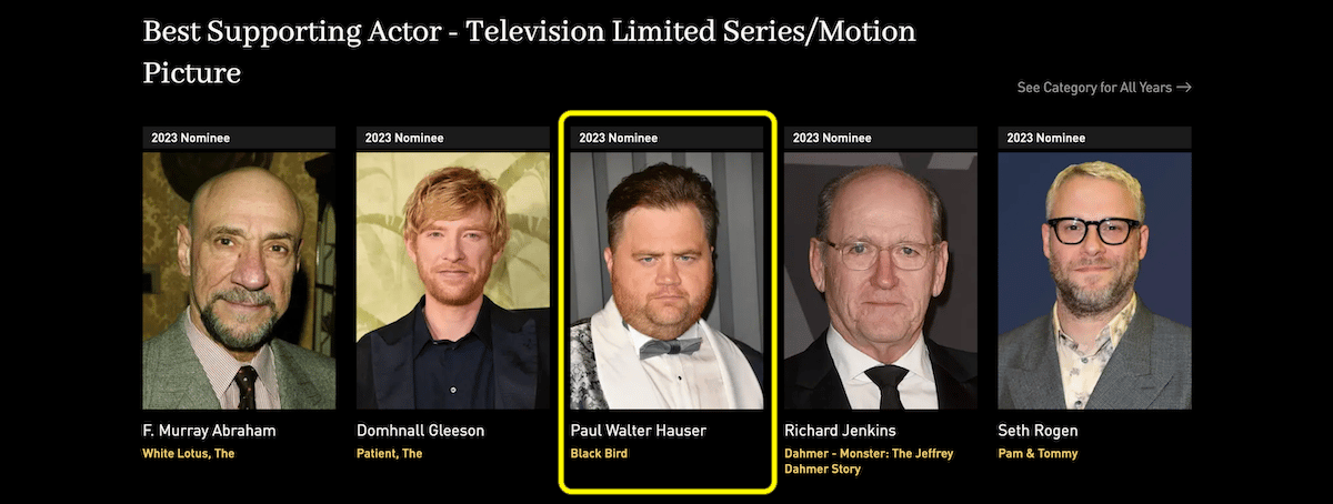 - Melhor atuação de ator coadjuvante em série limitada, série antológica ou filme feito para televisão - Paul Walter Hauser.