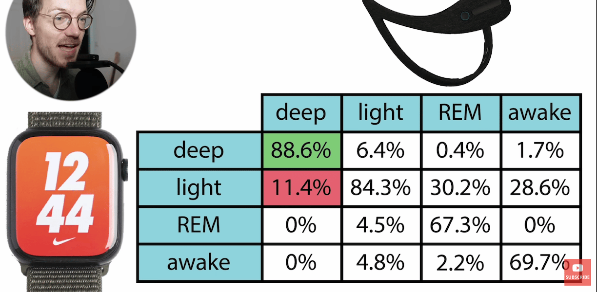 O novo watchOS 9 traz novos rastreamentos dos estágios do sono em Apple Watches compatíveis. Antes do lançamento público da atualização, o YouTuber @The Quantified Scientist aproveitou o watchOS 9 beta para testar a precisão com que o Apple Watch rastreia os estágios do sono e descobriu que os resultados eram muito próximos, quase idênticos aos de um dispositivo de EEG.
