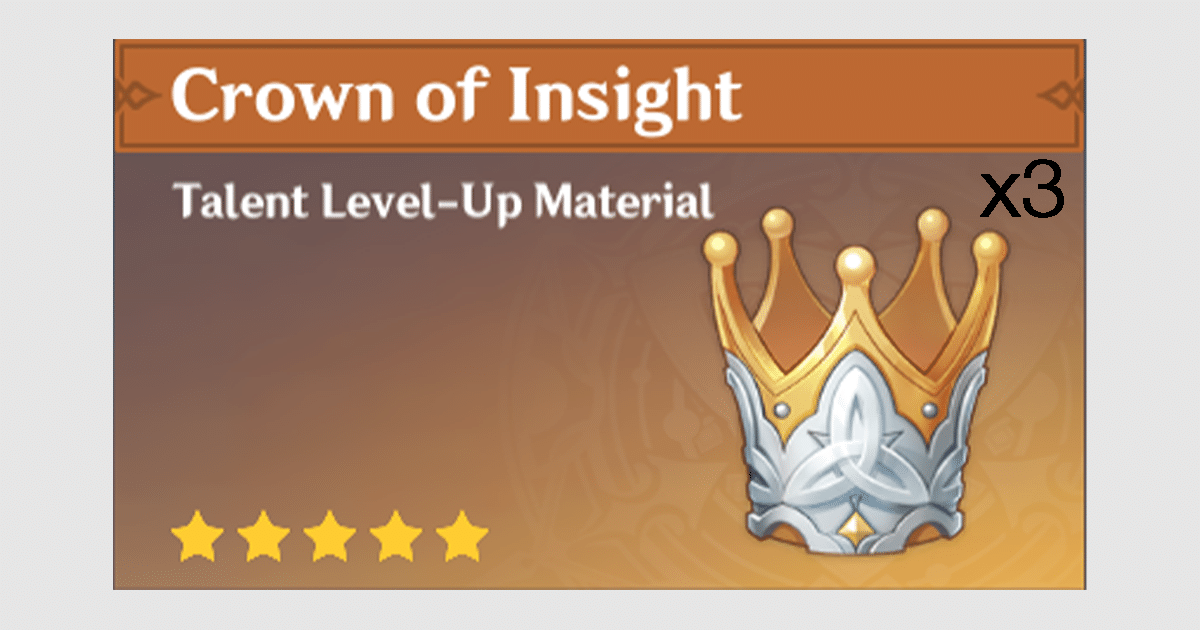 - Coroa do Insight: São necessárias três coroas para maximizar os talentos de um personagem. Estes são muito raros e vêm de eventos ou chefes.