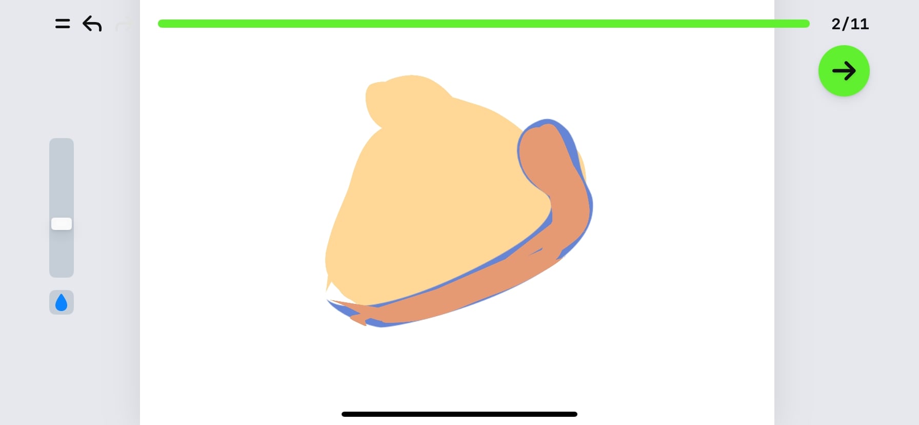 Para desfazer qualquer etapa, toque noseta para esquerdano canto superior esquerdo. Quando terminar a etapa, toque nocarrapato verdepara finalizar o processo.