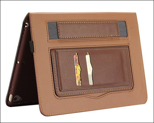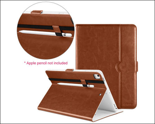 Quanto à proteção, esta capa fólio é confiável para absorver choques e também evitar arranhões. Com porta-lápis Apple e slots para cartões integrados, ele atende a todas as suas necessidades básicas. Isso não é tudo, o Ztotop vem em quatro cores quentes: preto, marrom, azul marinho e vermelho.