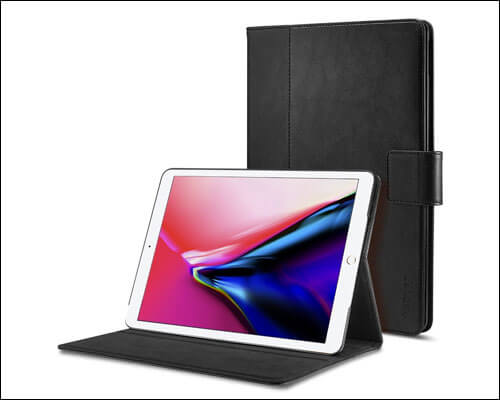 Se você deseja ter um estojo de couro sintético acessível que possa durar muito tempo com capas caras de couro genuíno, o estojo folio Spigen seria uma escolha inteligente. Tem um design refinado que dá ao seu iPad uma aparência formal. Para oferecer a proteção necessária contra choques, possui shell de PC.