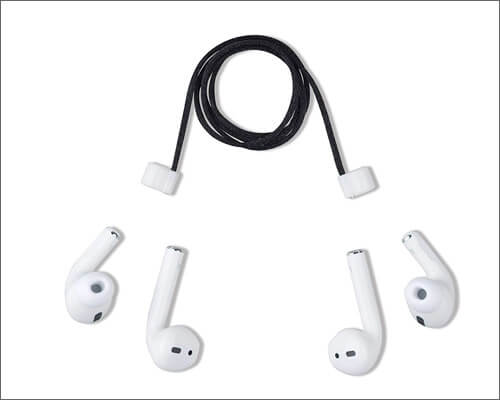 Este é leve e confortável de usar. É feito de um cordão macio e macio em forma de cauda de rato que o torna agradável de usar e também não causa danos à pele. Ele mantém os AirPods no lugar perfeitamente. O conector TPU durável é fácil de remover e instalar. Isso é especialmente útil quando você precisa retirar os botões para carregar.