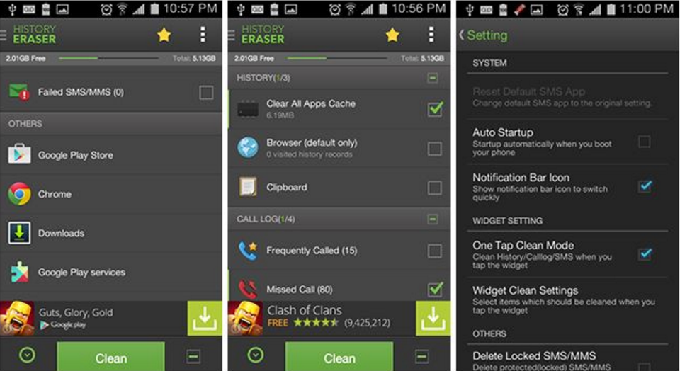 Você pode limpar todos eles com um único clique ou escolhendo. Funciona sem root e o History Eraser também é gratuito.