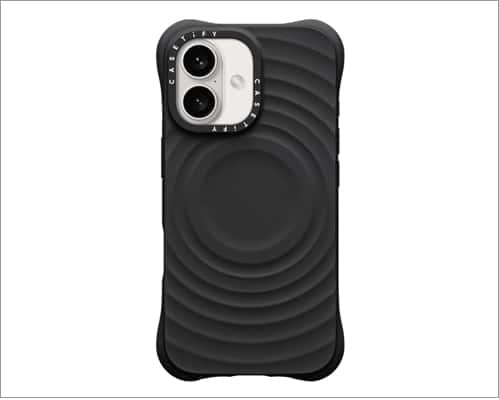 Se você deseja uma capa para iPhone 16 com aparência única e que também tenha uma ótima aderência, dê uma olhada nesta capa Ripple super legal da Casetify. Ele oferece um design atraente enquanto mantém seu dispositivo seguro, com proteção contra quedas de até 6,6 pés. Acho que o padrão ondulado parece bastante moderno e adiciona um elemento tátil que realmente melhora a aderência. Isso é ótimo para mim, pois posso ser bastante desajeitado e muitas vezes derrubo meu telefone. O material resistente a impactos do Casetify mantém seu dispositivo protegido contra quedas e choques diários. Apesar disso, mantém um perfil fino e não adiciona muito volume.