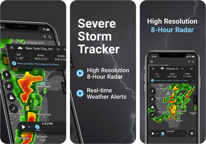 Você pode usar este aplicativo antes de sair para trabalhar, para a segurança de casa ou para seus filhos na escola. Storm irá ajudá-lo a entender o clima como nunca antes. Oferece tecnologia de mapeamento HD precisa e avançada. Além disso, você pode verificar os padrões climáticos ao vivo em todo o mundo.
