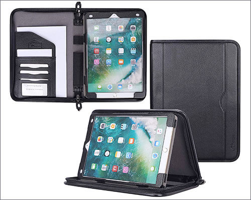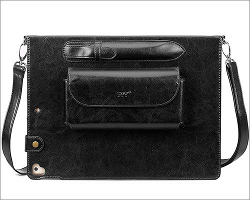 Mais um entrando para o clube premium dos cases; Alston Craig foi feito à mão em couro genuíno vintage. Possui um recurso de fechamento magnético que também suporta a opção de despertar e dormir automaticamente. Se falamos de acessibilidade, ele suporta muitas opções de visualização diferentes. Não é apenas um caso; é um luxo. Esta é uma das melhores capas de couro para iPad Pro.