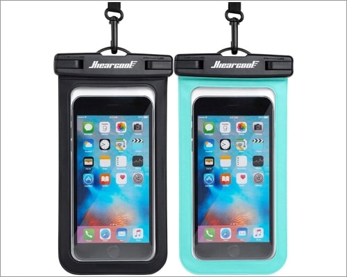 Se você gosta de praticar snorkel ou mergulho, este é imperdível. A tecnologia de bloqueio de camada tripla do Hiearcool oferece proteção à prova d'água contra água, chuva e neve. A bolsa tem 8,3 polegadas para que você possa colocar seu iPhone nela. Além disso, o material TPU aprimorado permite que você use seu telefone com a capa.
