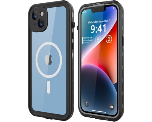 Se você está procurando a melhor proteção a um preço razoável, não procure mais e adquira o case à prova d’água Temdam. Ele vem com classificação IP68 de resistência à água e poeira e cobre seu iPhone 14 Plus ou 14 Pro Max na frente e atrás. Ele oferece proteção contra quedas de nível militar de 14 pés com caixa à prova de choque.