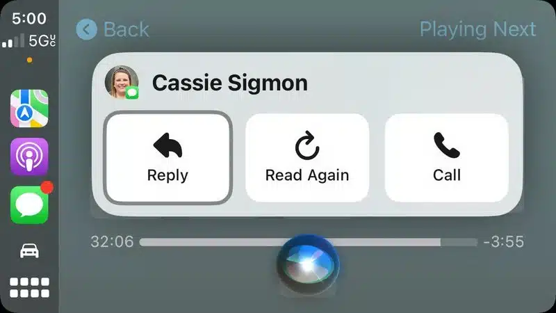Graças ao iOS 17, a interação com o Siri também foi atualizada. Os usuários que executam o iOS 17 em um iPhone compatível agora podem avisar o assistente de voz apenas dizendo “Siri" em vez de "Ei Siri”Ao usar o CarPlay.