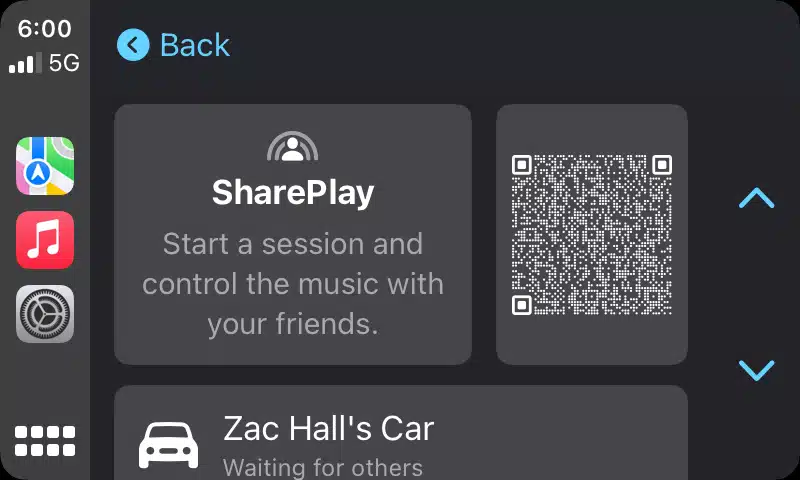 Isso permite que todos os passageiros de um carro controlem a música que está tocando em seus próprios dispositivos, mesmo que não tenham uma assinatura do Apple Music. O usuário principal pode iniciar uma sessão SharePlay do CarPlay.