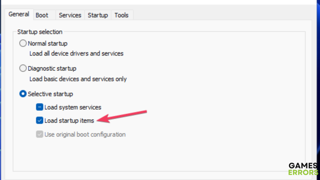 - Desmarque a caixa de seleção doCarregar itens de inicializaçãoopção para desativar aplicativos de terceiros começando com o Windows.