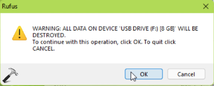 4.CliqueCOMEÇARpara começar a criar o USB inicializável. Em seguida, você receberá um aviso de que todos os dados no USB serão formatados. Se você já fez backup de seus dados, clique emOKpara prosseguir.