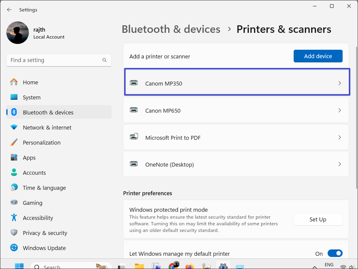 4. Em seguida, volte para as configurações do Windows e navegue atéBluetooth e dispositivos>Impressoras e Scanners.Em seguida, tente remover a impressora.