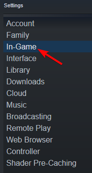 - Em seguida, na janela Configurações, clique emNo jogoà esquerda.