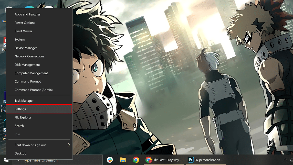 - Clique com o botão direito noComeçar> clique emConfiguraçõesopção.