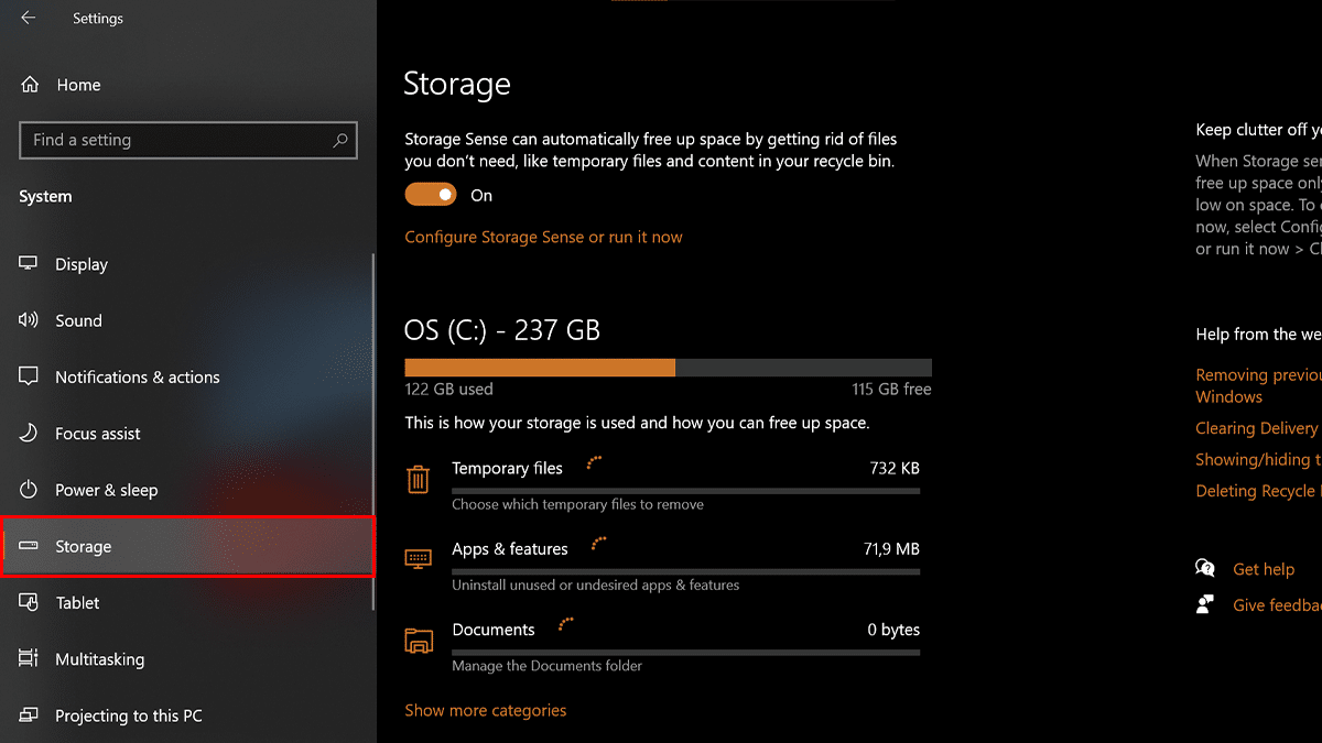 Um dispositivo operando com tração nas quatro rodas tornará o sistema lento e causará muitos erros. Portanto, os usuários nunca devem usar mais de 70% da capacidade total para evitar problemas ou erros de desempenho. O Windows 10 oferece muitas maneiras de liberar espaço quando o disco rígido do computador tem pouco espaço disponível. E alguns dos métodos mais fáceis incluem o uso das configurações de arquivo temporário e dos recursos do Storage Sense.