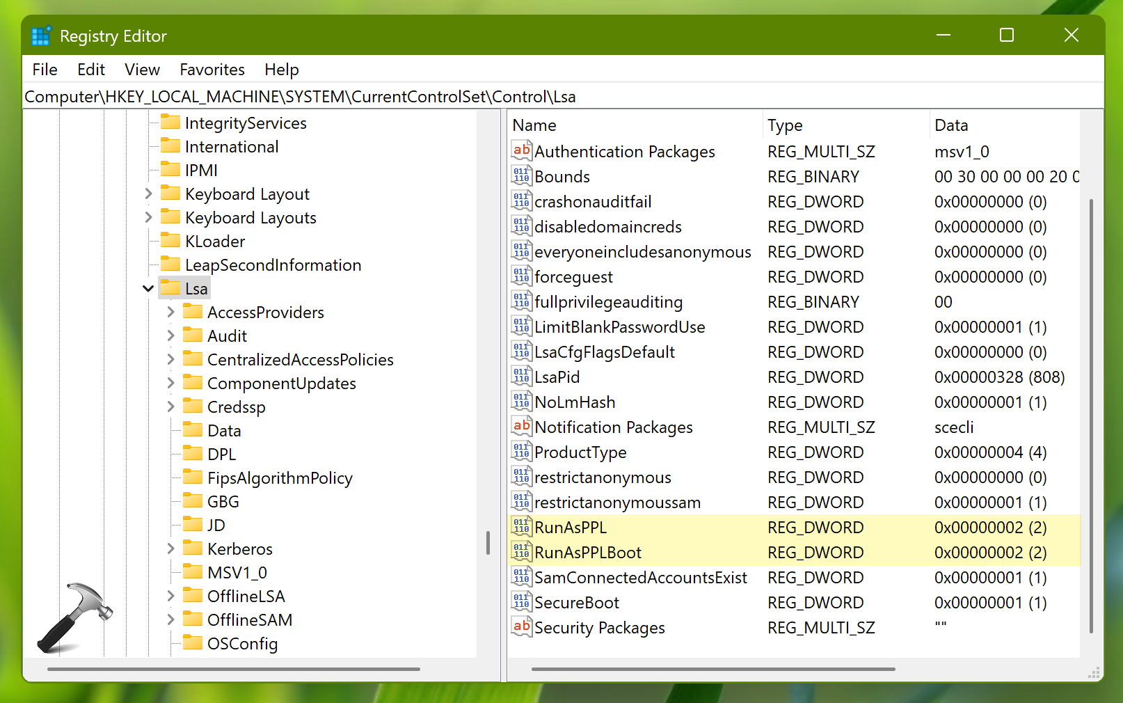 HKEY_LOCAL_MACHINESYSTEMCurrentControlSetControlLsa