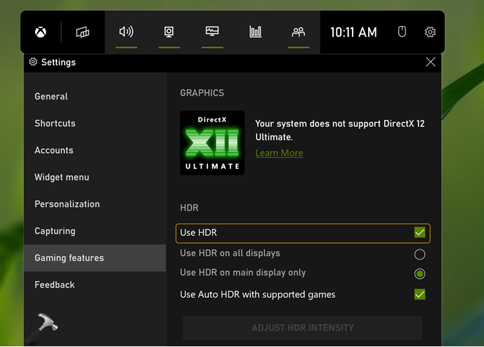 3.Em Configurações, vá para Recursos de jogos, marqueUsar HDRopção para ativar HDR.