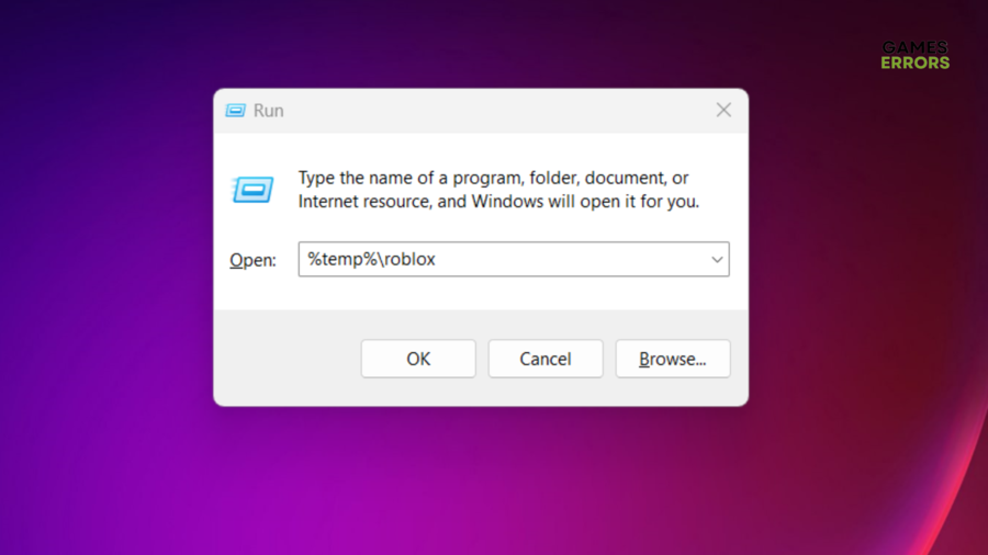 - Na janela pop-up, digite o seguinte:%temp%roblox.