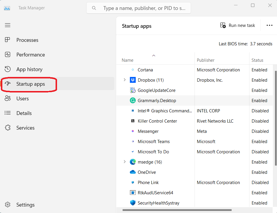 Clique com o botão direito noComeçarbotão e selecioneGerenciador de tarefas. Na janela que apareceu, clique em Aplicativos de inicialização. Clique com o botão direito em qualquer programa da lista e clique em Desativar.