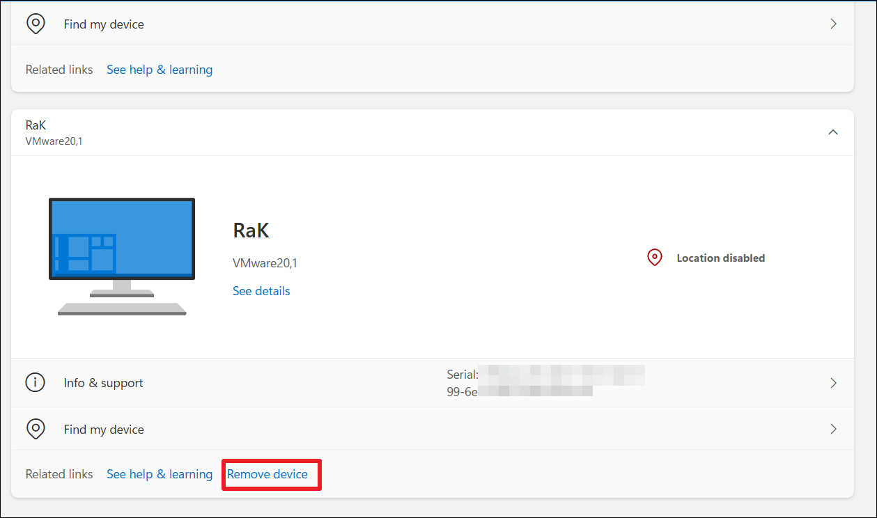 3. Clique no botão “Remover dispositivo”botão em todos os outros dispositivos que você deseja remover da lista.