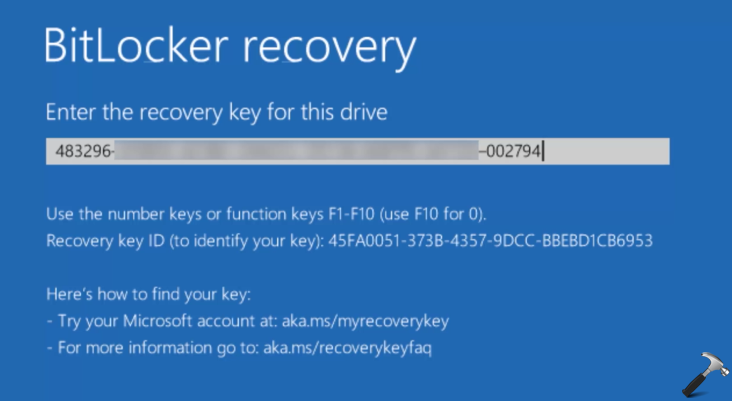 Digite sua chave de recuperação do BitLocker e pressione a tecla Enter. Você pode localizar sua chave de recuperação do BitLocker emhttps://account.microsoft.com/devices/recoverykey.