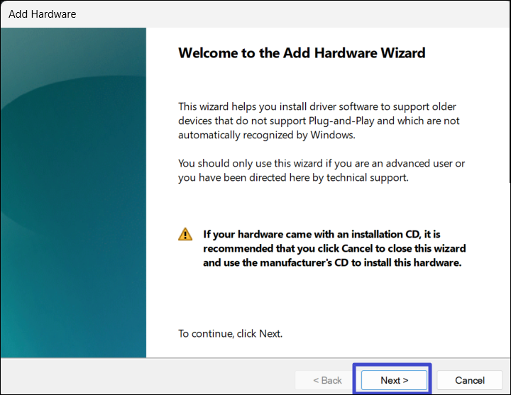 4. Selecione “Procure e instale o hardware automaticamente (recomendado)e clique em “Próximo".