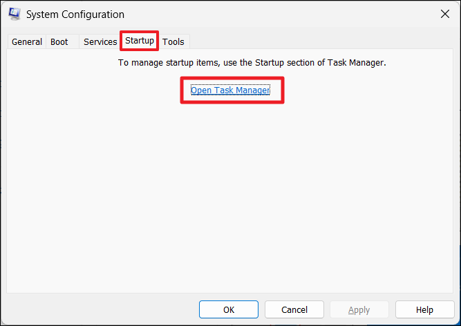 5. Vá para “Comece”E clique em“Abra o Gerenciador de Tarefas“.