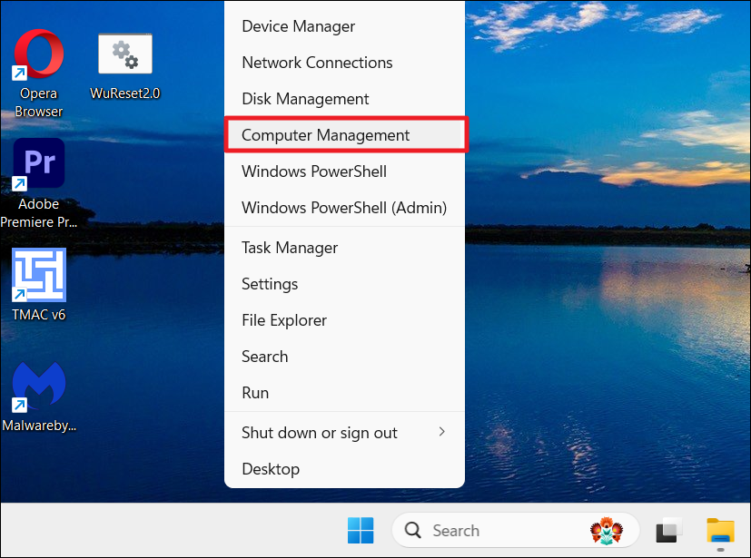1. Clique com o botão direito no menu Iniciar e selecione “Gerenciamento de Computador“.