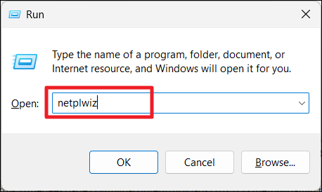 1. Pressione Windows + R para abrir a caixa de diálogo Executar. Tipo "netplwiz”e pressione Enter.