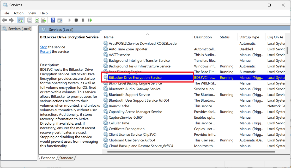 2. Clique duas vezes em “Serviço de criptografia de unidade BitLocker”serviço.