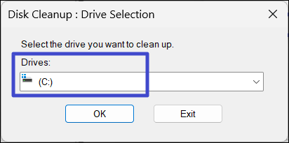 2. Escolha a unidade que deseja limpar e clique em “OK“.