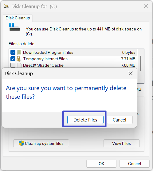 4. Clique em “Excluir arquivos”Para confirmar.