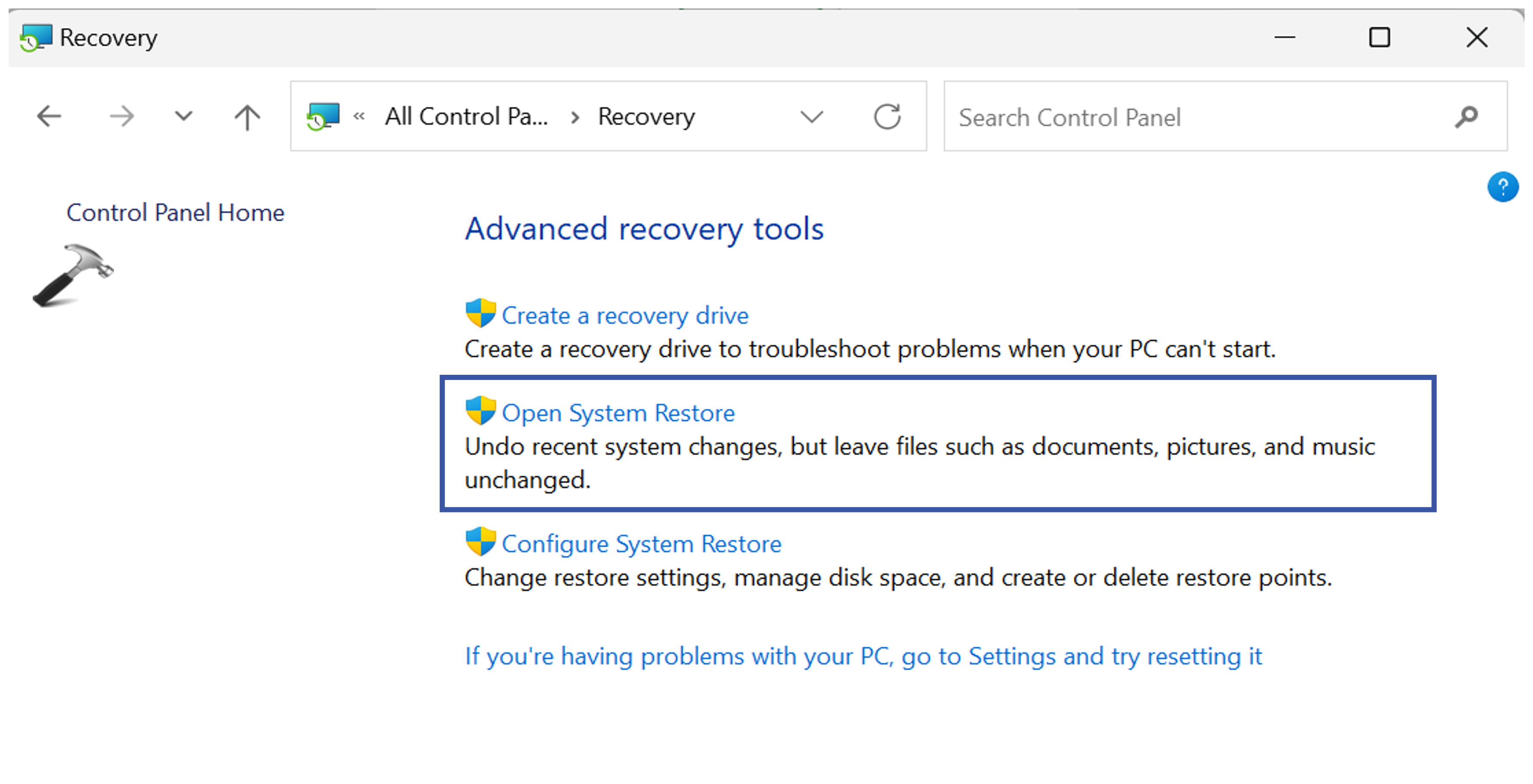 2. Agora, clique em “Abrir Restauração do sistema“.