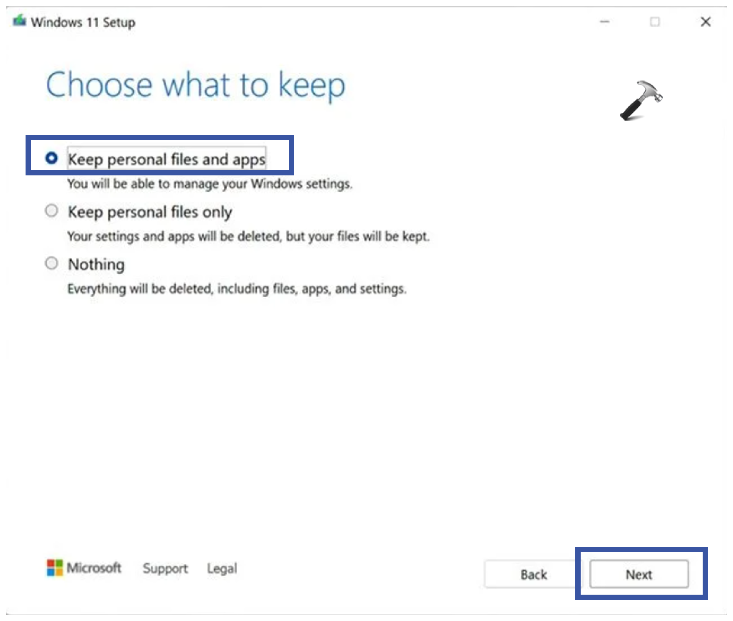 9. CliquePróximopara começar a reinstalar o Windows 11.
