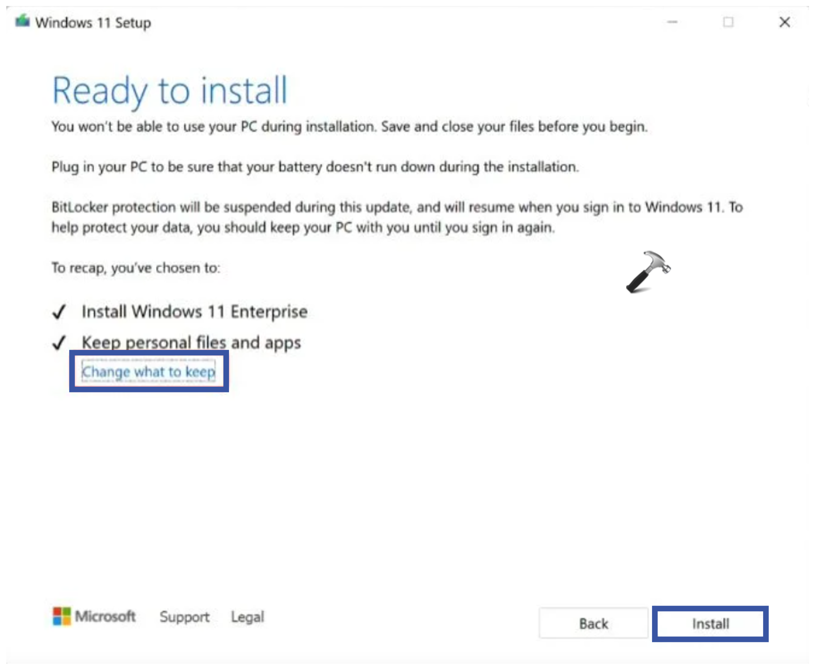 7. Ao final, selecione “Instalar”Para iniciar a reinstalação do Windows 11 em seu PC. Seu PC será reiniciado várias vezes durante a reinstalação.
