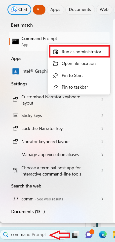 1. Pesquise Prompt de Comando na barra de pesquisa e abra-o como administrador.