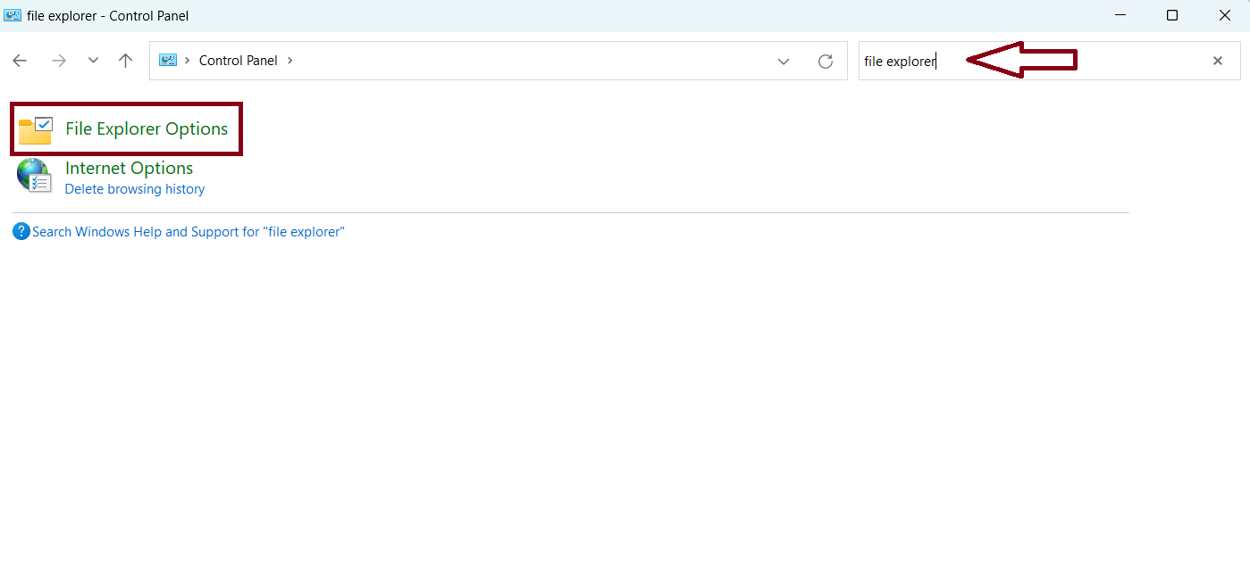 2. Digite File Explorer na barra de pesquisa e clique em Opções do File Explorer.
