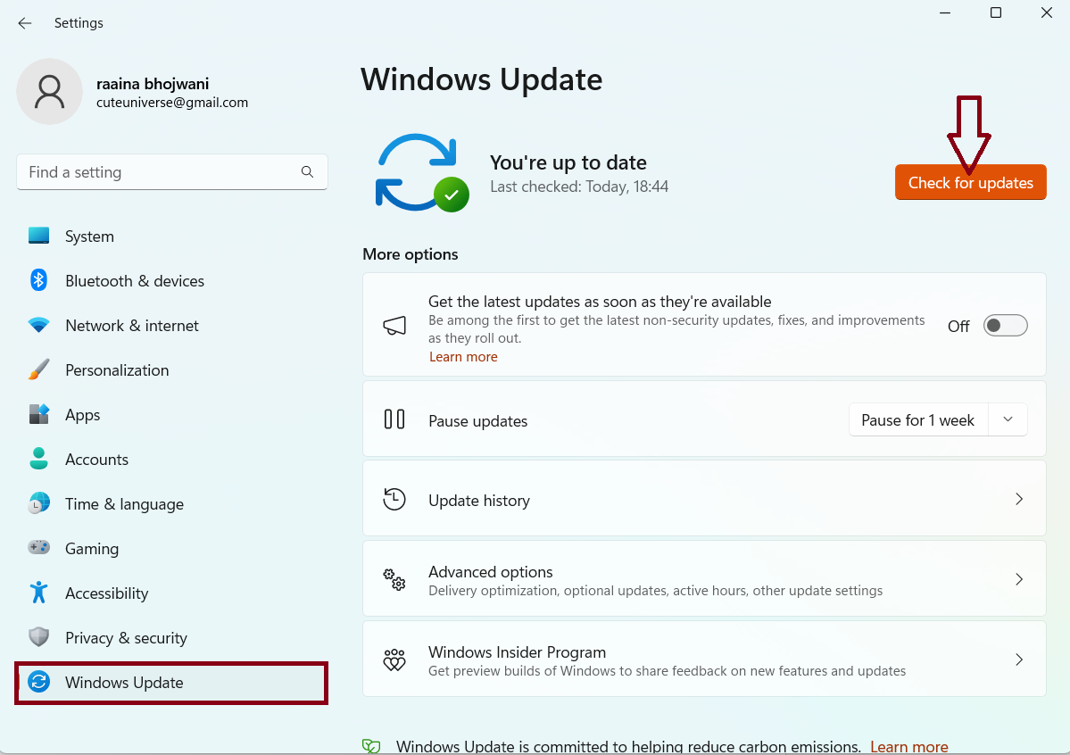 Correção 2: verifique se há atualizações