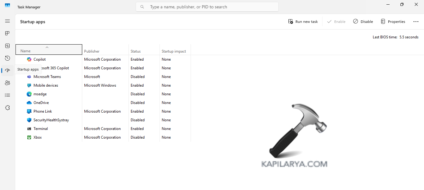 Verificar os itens de inicialização no Gerenciador de Tarefas e excluir qualquer item incomum também pode ajudar a resolver o erro de linha de comando inválido na inicialização do Windows 11. Assim, siga os passos abaixo para verificar os itens.