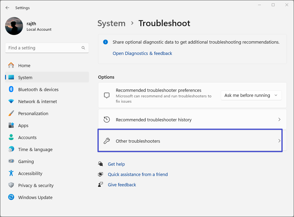 2. Em seguida, selecione “Outros solucionadores de problemas“.