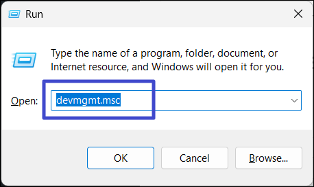 1. Pressione Windows + R para abrir a caixa Executar Comando, digitedevmgmt.msce pressione Enter.