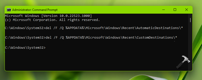 del /F /Q %APPDATA%MicrosoftWindowsRecentAutomaticDestinations*