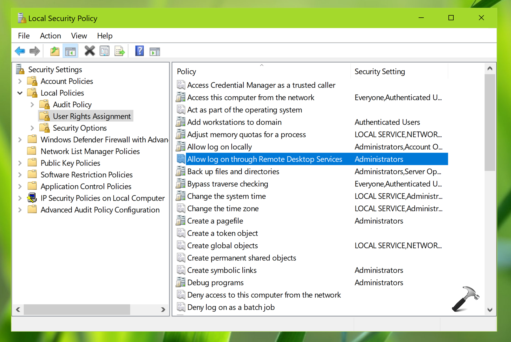 3. No painel direito, clique duas vezes emPermitir logon através dos Serviços de Área de Trabalho Remota.