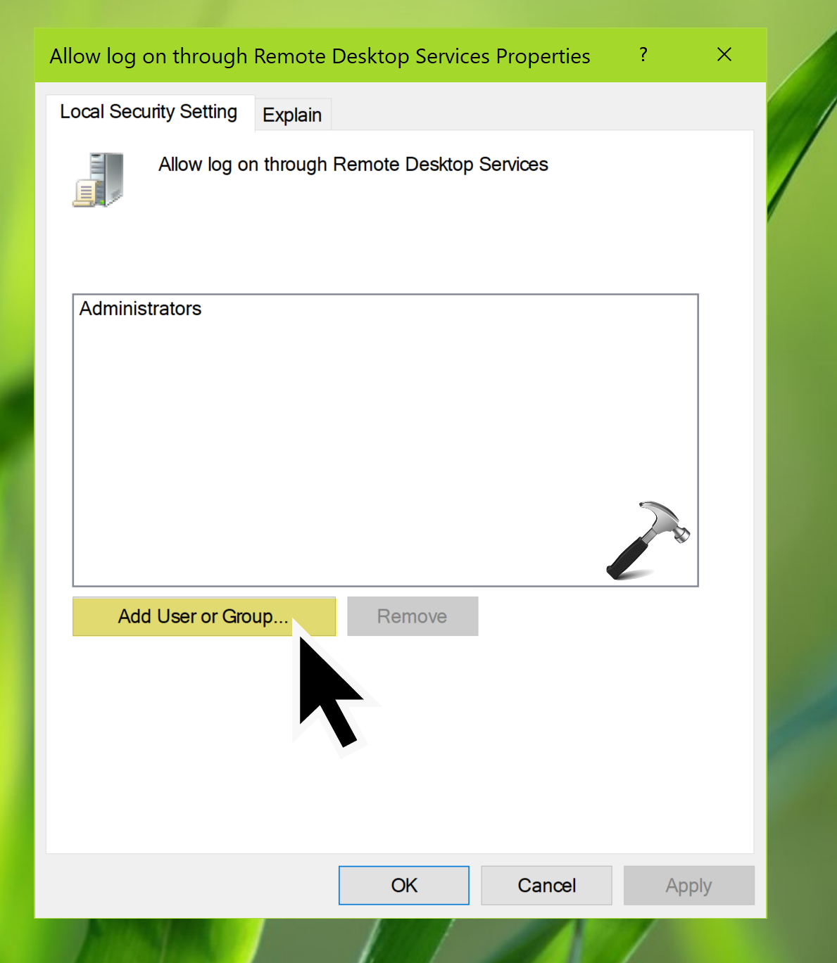 4. Por fim, clique em Adicionar usuário ou grupo e certifique-se de adicionar aqui o usuário/máquina que está enfrentando esse problema. Quando terminar, clique em Aplicar, OK.