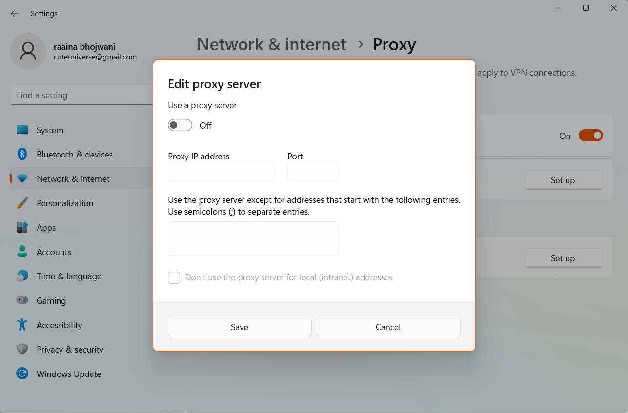 - Agora clique emConfigurarao lado deUse um servidor proxyopção.