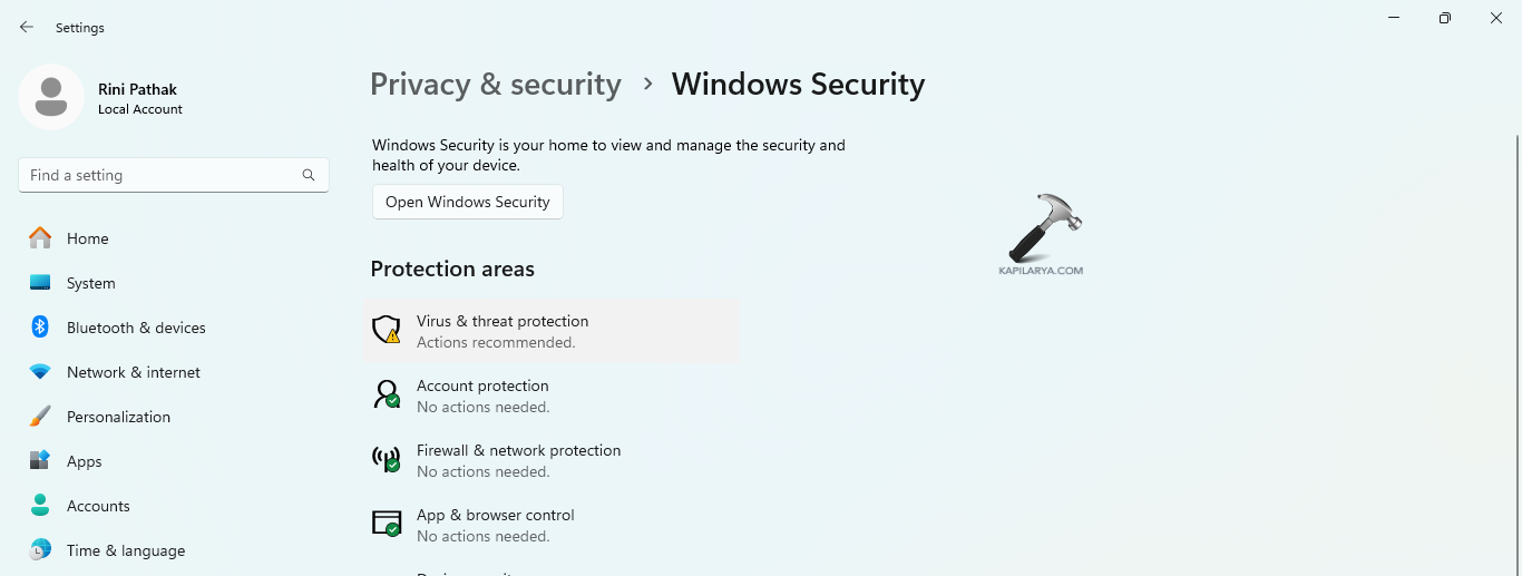 Passo 2-Em seguida, vá para Proteção contra vírus e ameaças.