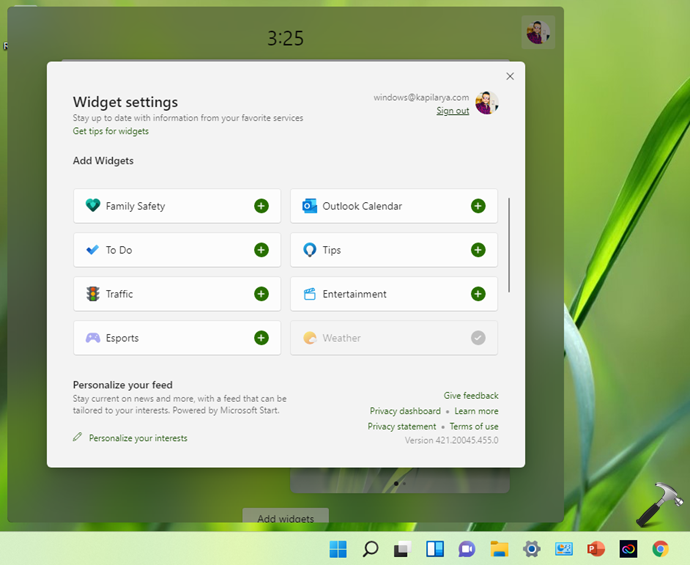 Reinstale os widgets no Windows 11.