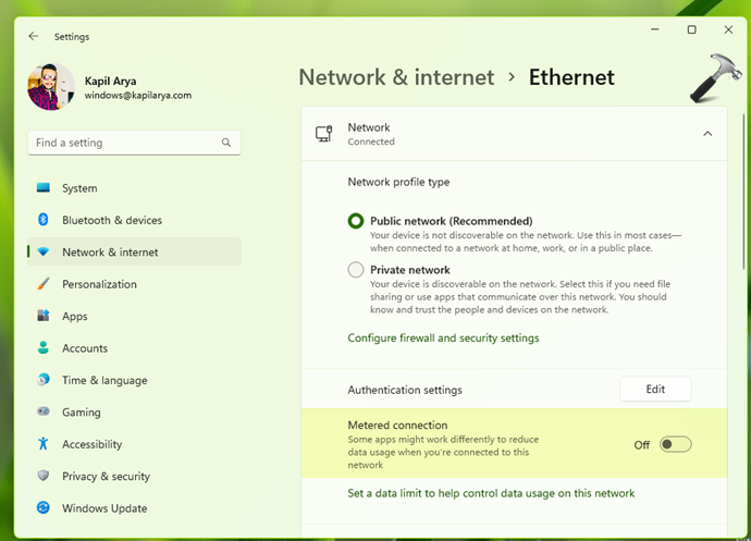 O recurso de conexão medida no Windows ajuda a minimizar o uso da rede. Quando a conexão medida está ativada para sua conexão de rede, alguns recursos podem não funcionar de maneira confiável. Portanto, você precisa garantir que a conexão medida esteja desativada e ver se isso ajuda.